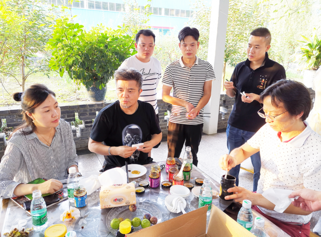 ? ? ? ?地道的菜品離不開(kāi)道地食材與調(diào)料。8月9日,上海菊?qǐng)@大酒店副總經(jīng)理兼行政總廚孫兆國(guó)先生與成都銀灘鮑魚(yú)火鍋周子玲女士一行蒞臨丁點(diǎn)兒股份全資子公司四川川麻人家參觀(guān)考察交流,丁點(diǎn)兒股份董事長(zhǎng)任康先生接待了孫總與周總一行,并陪同參觀(guān)了川麻人家生產(chǎn)車(chē)間、產(chǎn)品展示廳、產(chǎn)品體驗(yàn)中心,并對(duì)公司干鍋醬、拌飯醬等產(chǎn)品進(jìn)行品嘗。