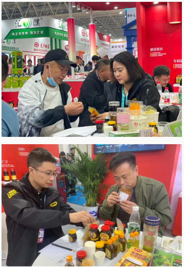 丁點兒展位上,公司流通系列、定制系列、電商系列、預制菜系列產(chǎn)品吸引了眾多參觀者駐足咨詢和體驗。用丁點兒產(chǎn)品烹飪的干鍋掌中寶、川式椒麻雞、酸菜魚等菜品香飄四溢,現(xiàn)場試吃后,不少客戶迫不及待和公司人員洽談,尋求合作。