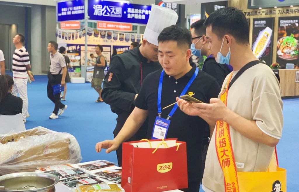 展會現(xiàn)場人流攢動,參觀、采購、品鑒不亦樂乎。丁點(diǎn)兒股份展位,風(fēng)味醬系列、雞汁系列、烤魚系列、花椒油系列等調(diào)味料展示突出搶眼,用丁點(diǎn)兒藤椒油、川味辣鹵、老壇酸菜醬、干鍋醬等烹飪的鹵雞翅、酸菜魚、干鍋掌中寶等菜品香飄四溢,贏得了現(xiàn)場過往逛展嘉賓的認(rèn)可。