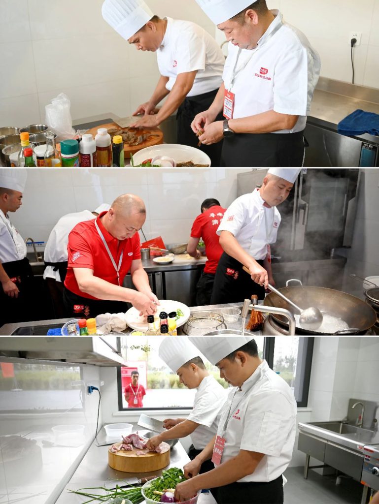 中國(guó)烹飪大師劉全剛、舒國(guó)重、劉凌峰、朱建中、曹曉軍等運(yùn)用丁點(diǎn)兒干鍋醬、金湯酸菜醬、藤椒油、椒麻雞汁及麻得倒紅花椒油等產(chǎn)品現(xiàn)場(chǎng)演繹特色菜品,幫助大家深化產(chǎn)品理解和運(yùn)用。大廚們以分組抽盲盒食材的形式進(jìn)行菜品制作挑戰(zhàn),在實(shí)操中發(fā)掘丁點(diǎn)兒高品質(zhì)特色川調(diào)獨(dú)特的風(fēng)味魅力。??