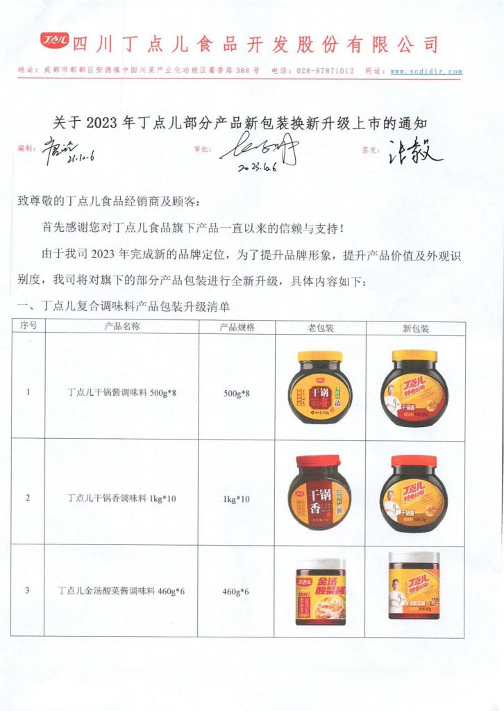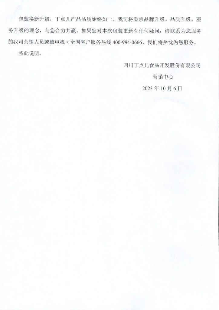 關(guān)于2023年丁點(diǎn)兒部分產(chǎn)品新包裝換新升級上市的通知