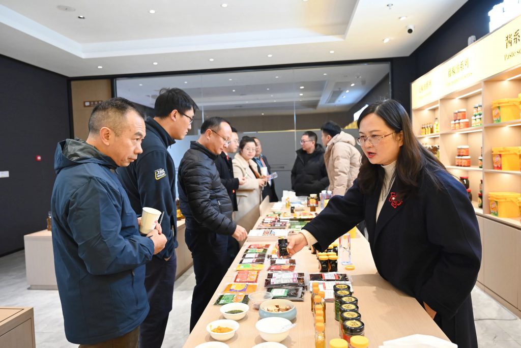 在應(yīng)用體驗(yàn)中心,丁點(diǎn)兒食品豐富的產(chǎn)品品類瞬間吸引了研修班一行的目光。大家紛紛拿起自己感興趣的產(chǎn)品進(jìn)行咨詢、品鑒,并對(duì)產(chǎn)品風(fēng)味給予了高度肯定,表達(dá)了合作發(fā)展的強(qiáng)烈意愿。
