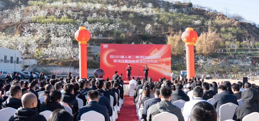為進(jìn)一步提升產(chǎn)能,勾勒“小花椒轉(zhuǎn)動(dòng)大產(chǎn)業(yè)”的振興藍(lán)圖,3月25日上午,川麻人家舉行了建設(shè)二期項(xiàng)目啟動(dòng)儀式暨尋找最美椒娘發(fā)布會(huì)。