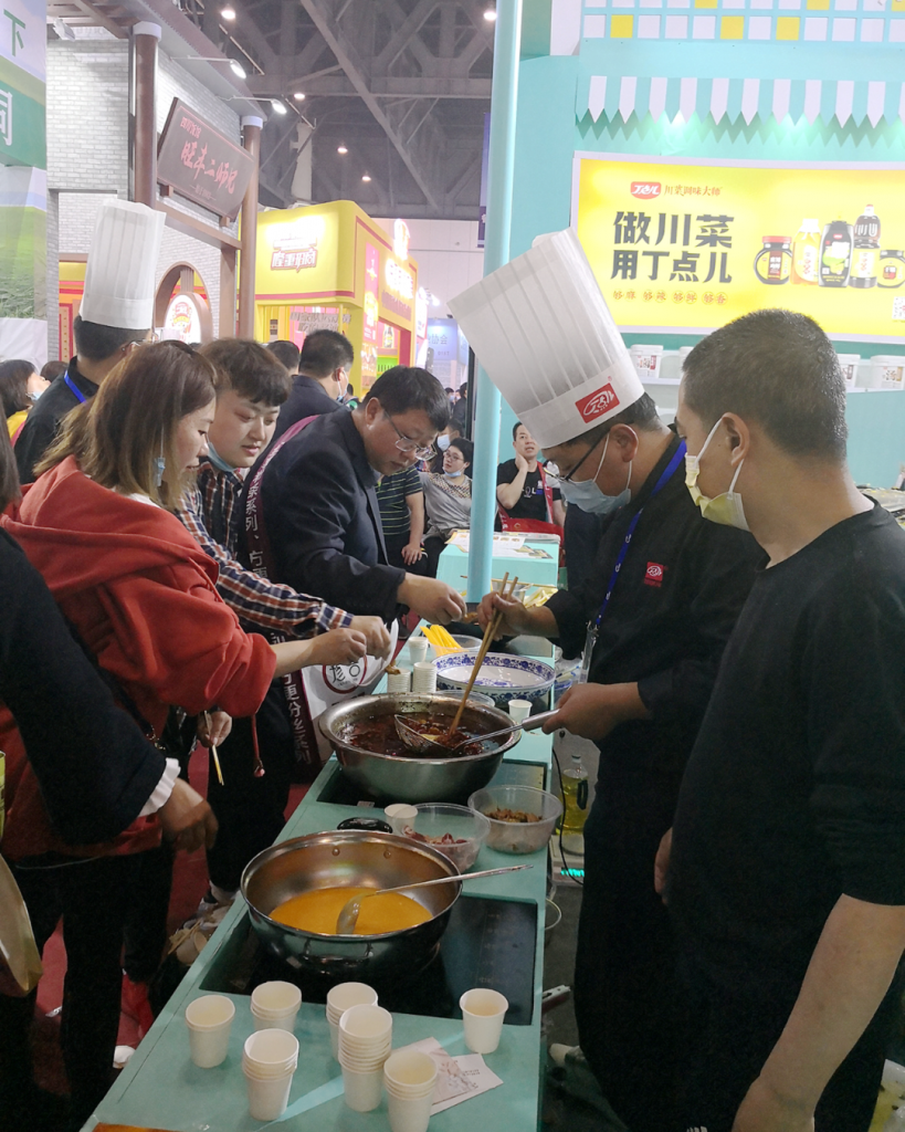 ? ? ?四川丁點(diǎn)兒股份針對(duì)流通、餐飲定制和家庭廚房調(diào)味料,現(xiàn)場產(chǎn)品展示突出搶眼、菜品應(yīng)用色香味型俱全。干鍋醬、椒麻雞汁、老壇酸菜魚、金湯酸辣醬、川味辣鹵汁、麻辣(蒜香)小龍蝦、油醋汁、姬松茸菌湯等經(jīng)典川菜調(diào)料明星產(chǎn)品隆重亮相,吸引了大批參會(huì)者前來品嘗并達(dá)成合作意向。