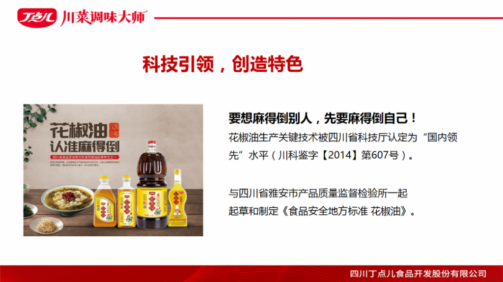 ? ? ? 以“豐富生活點點滋味”為理念,丁點兒股份致力于推動川菜調味標準化、川菜菜品工業(yè)化的發(fā)展,為餐飲客戶提供安全、便捷的調味標準化產(chǎn)品,簡化川菜烹飪流程,讓川菜烹調變簡單!