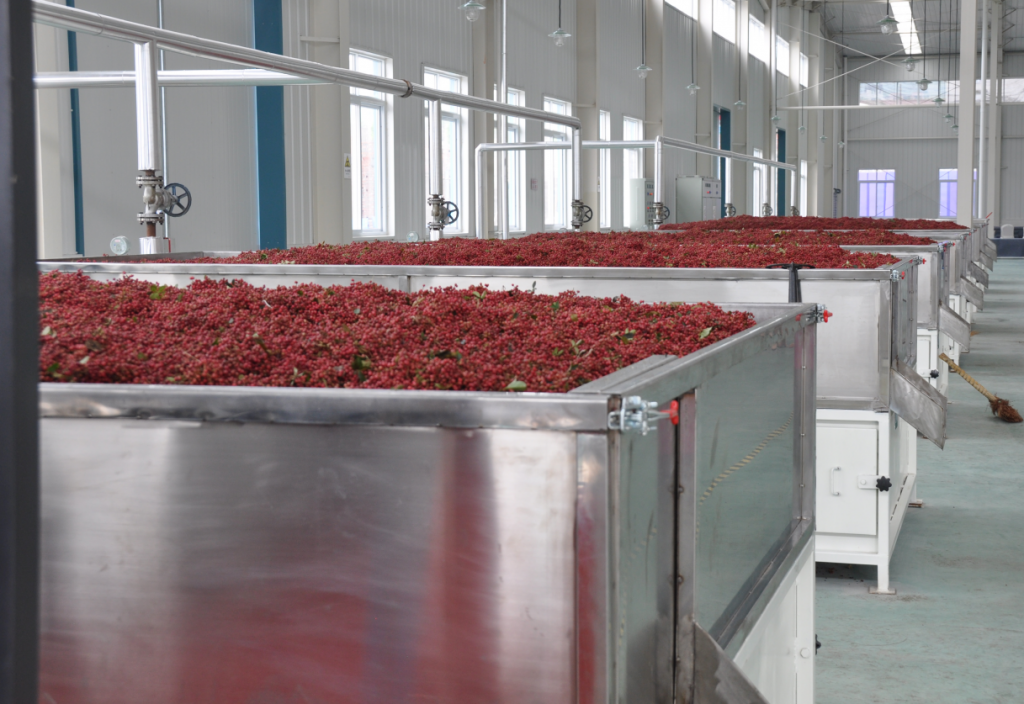 ? ? ? ?四川川麻人家食品開發(fā)有限公司位于漢源縣甘溪壩工業(yè)園區(qū),現(xiàn)場,工作人員正在操作全自動設(shè)備將收購來的鮮花椒進(jìn)行分揀、烘干、鮮榨等加工。