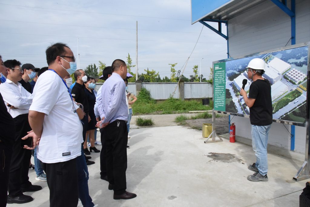 △丁點(diǎn)兒股份項(xiàng)目經(jīng)理張欣為考察團(tuán)嘉賓介紹公司生產(chǎn)基地?cái)U(kuò)能技改項(xiàng)目