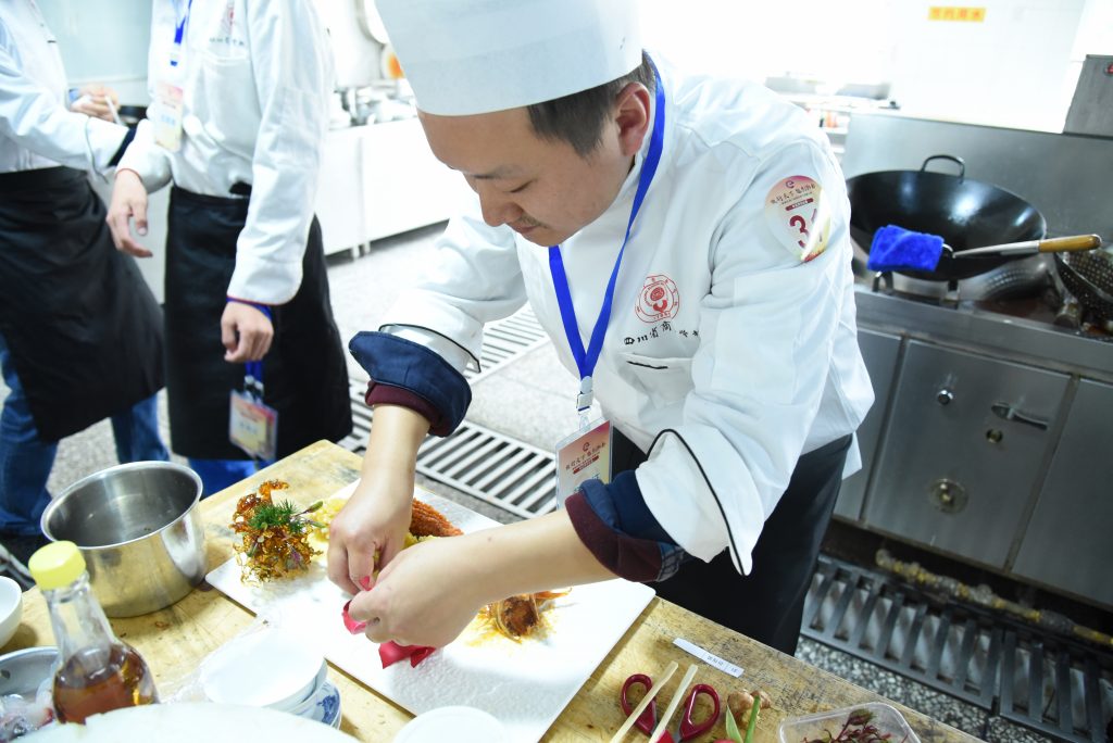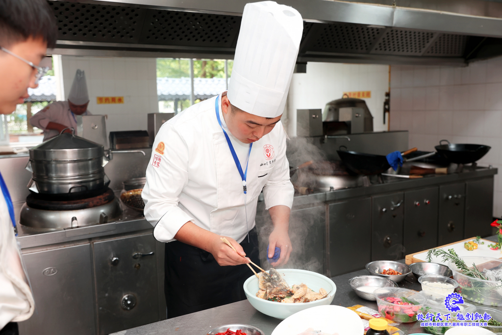 ? ? ? ?近日,由成都市郫都區(qū)人力資源和社會保障局、成都市郫都區(qū)商務(wù)局、成都市郫都區(qū)總工會、共青團(tuán)成都市郫都區(qū)委員會等部門主辦的郫都區(qū)第六屆青年職工技能大賽中式烹飪賽項成功舉辦,來自郫都區(qū)各企業(yè)的30多位選手齊聚四川省商務(wù)學(xué)校,盡展烹飪技藝。