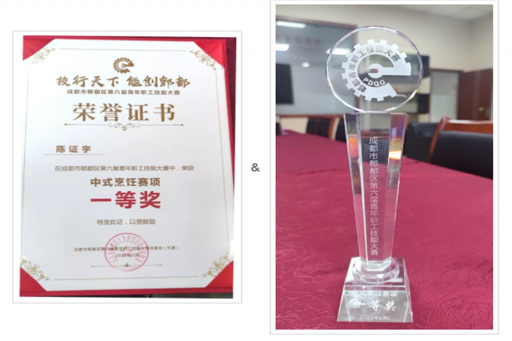 ? ? ? ?經(jīng)過激烈角逐,丁點兒股份陳證宇過關(guān)斬將,憑借扎實的功底及完美的表現(xiàn)脫穎而出,榮獲中式烹飪賽項一等獎。
