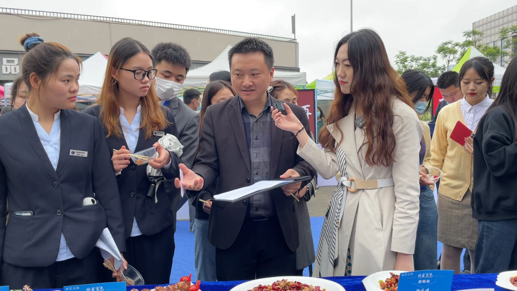 ? ? ? ?同時,丁點兒股份作為承辦單位,也為大家?guī)砹艘粓龃ㄎ稑藴驶瘡秃险{(diào)味料特色產(chǎn)品展示,丁點兒-麻得倒紅花椒油、香鍋干鍋醬、無脂肪白灼汁、泡鳳爪調(diào)味料等豐富的產(chǎn)品種類吸引了現(xiàn)場師生的目光,大家紛紛駐足了解。