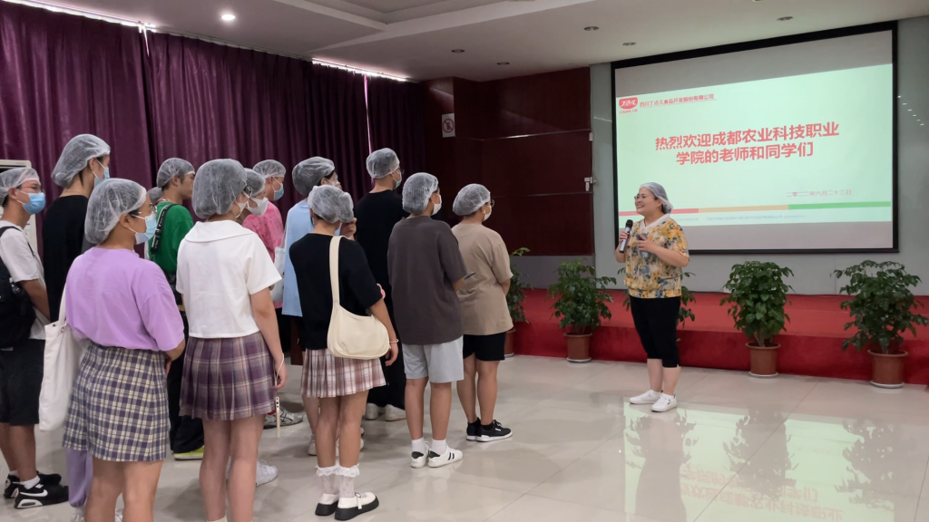 ? ? ? ?為扎實(shí)推進(jìn)產(chǎn)教深度融合,拓寬校企合作深度,盡早讓學(xué)生了解所學(xué)專業(yè)用途,切身了解企業(yè)對(duì)人才的需求標(biāo)準(zhǔn)、認(rèn)識(shí)技能與就業(yè)能力的重要性,6月23日上午,成都農(nóng)業(yè)科技職業(yè)學(xué)院三位老師帶領(lǐng)一百名學(xué)生來到丁點(diǎn)兒股份參觀交流、探索學(xué)習(xí)。丁點(diǎn)兒股份企業(yè)技術(shù)中心常務(wù)副主任羅強(qiáng)祖、人資行政部部長(zhǎng)陳霞等相關(guān)領(lǐng)導(dǎo)參與迎接并向來訪師生表示熱烈的歡迎。