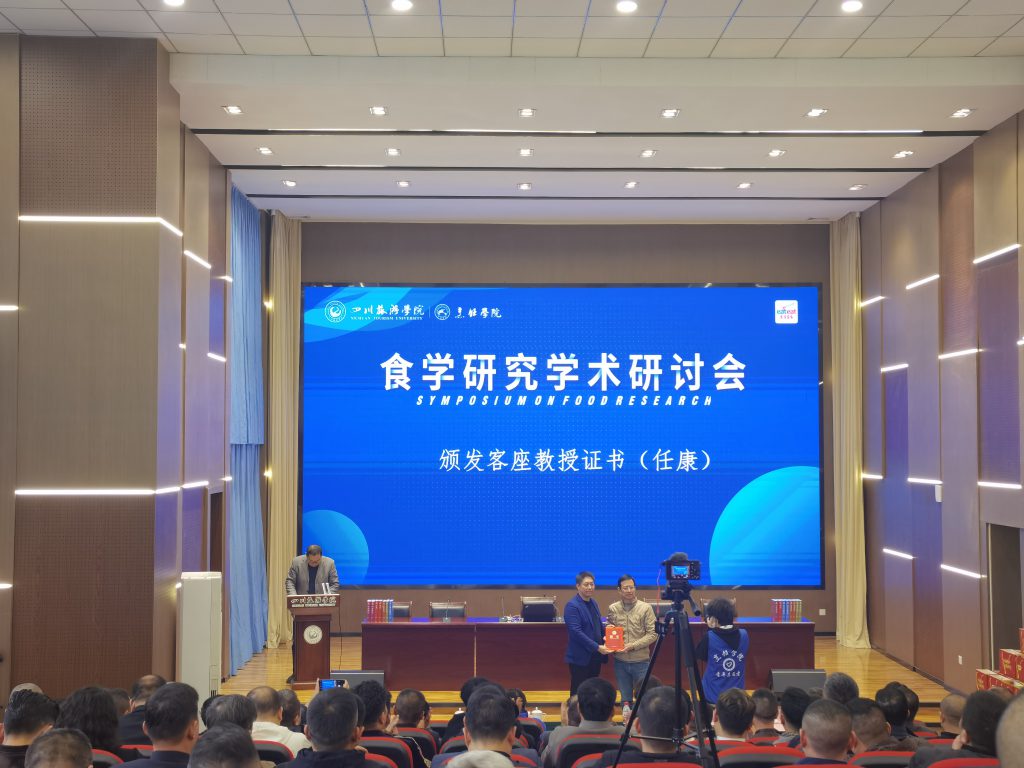 活動(dòng)中,四川旅游學(xué)院副院長(zhǎng)馮飛為任康董事長(zhǎng)頒發(fā)了客座教授聘任證書。