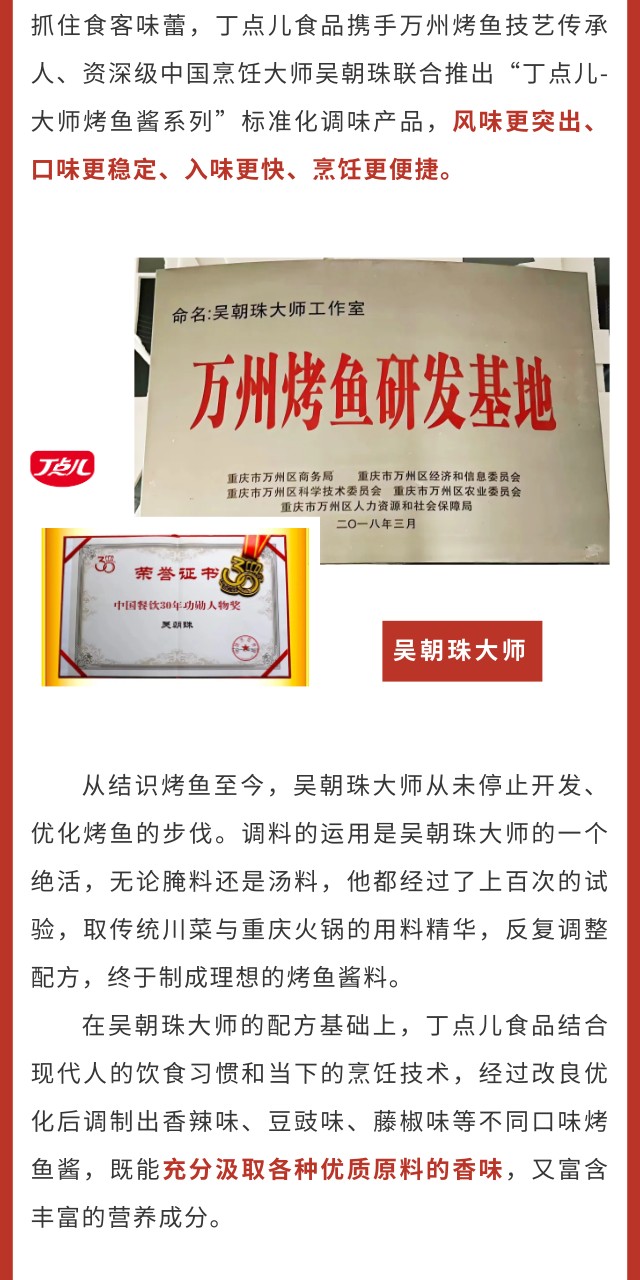 洞察千億級(jí)烤魚(yú)賽道,丁點(diǎn)兒食品攜手萬(wàn)州烤魚(yú)技藝傳承人吳朝珠大師再出新招