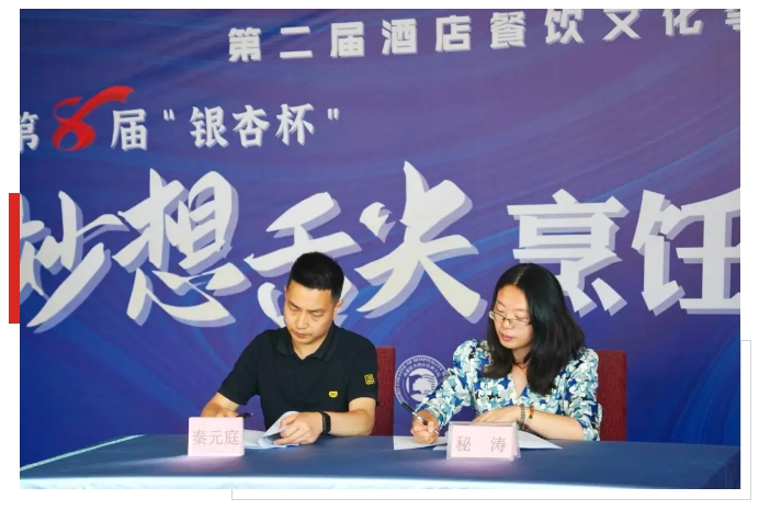 隨后,秦經理代表丁點兒食品與成都銀杏酒店管理學院副院長秘濤進行了校企簽約儀式,標志著雙方合作再啟新程。