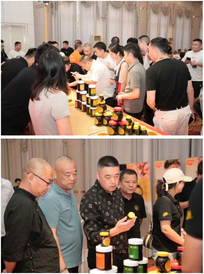在丁點兒高品質(zhì)特色川調(diào)產(chǎn)品展示區(qū),泡椒醬、干鍋醬、藤椒油等豐富的產(chǎn)品陳列吸引了眾多參會人員駐足詢問了解。口味穩(wěn)定,快速出餐,可優(yōu)化菜品成本等產(chǎn)品優(yōu)勢,引得大家紛紛咨詢合作。