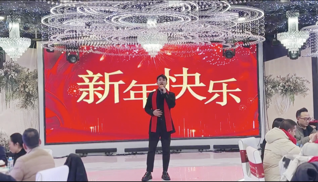 在歡樂氛圍中,丁點(diǎn)兒食品市場部經(jīng)理倪春云以一首熱情洋溢的彝族祝酒歌,向在座的各位嘉賓表達(dá)了誠摯的祝福與感謝。激昂而富有感染力的歌聲,瞬間點(diǎn)燃現(xiàn)場,將年會氛圍推向高潮。