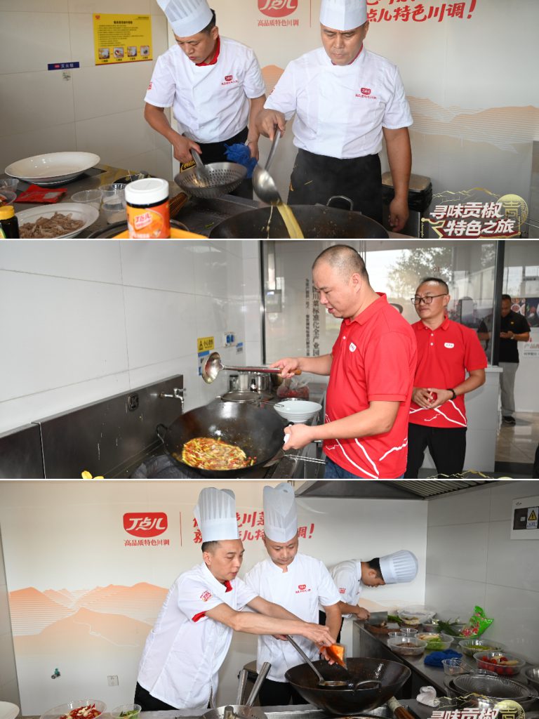 廚藝交流環(huán)節(jié),嘉賓們分組以椒麻、金湯酸菜、泡椒、干鍋四大風(fēng)味為靈感,結(jié)合丁點(diǎn)兒椒麻雞汁、干鍋醬等即興創(chuàng)作佳肴?,F(xiàn)場香氣四溢,創(chuàng)意迭出。