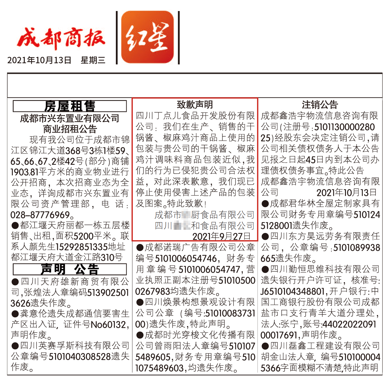 捍衛(wèi)知識(shí)產(chǎn)權(quán)和消費(fèi)者利益,丁點(diǎn)兒股份干鍋醬、椒麻雞汁維權(quán)案勝訴